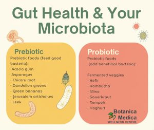 Start nourishing it today with probiotic and prebiotic foods — and if you’d like personalised guidance, book a consult with us at Botanica Medica. Let’s help your microbiome flourish!”